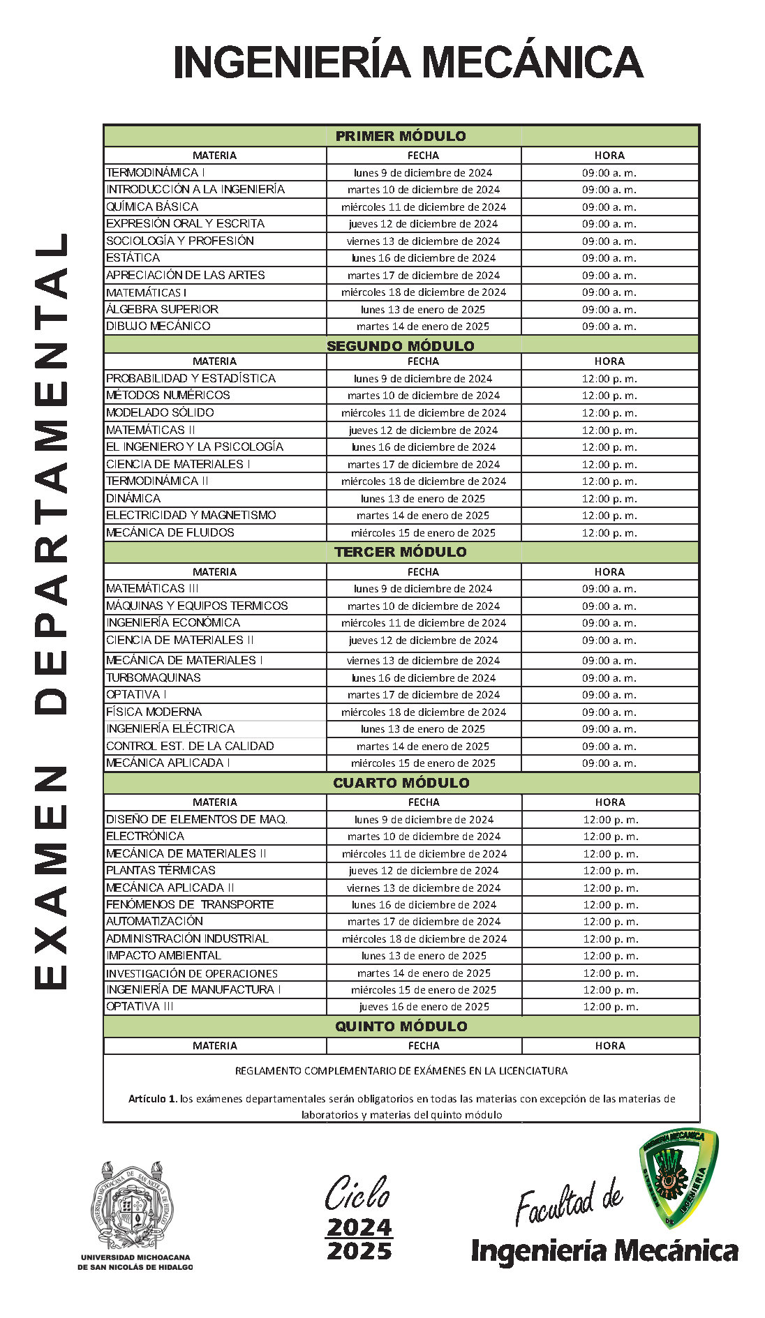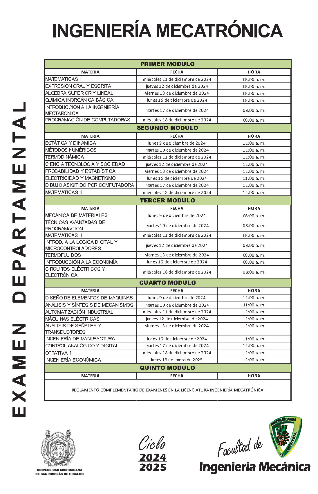 Calendario de exámenes departamentales Mayo-Junio 2025