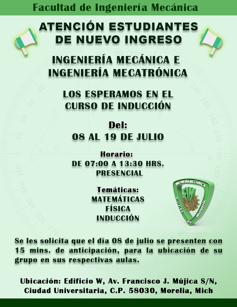 CURSO DE INDUCCIÃN ASPIRANTES A LICENCIATURA EN INGENIERÃA MECÃNICA Y MECATRÃNICA