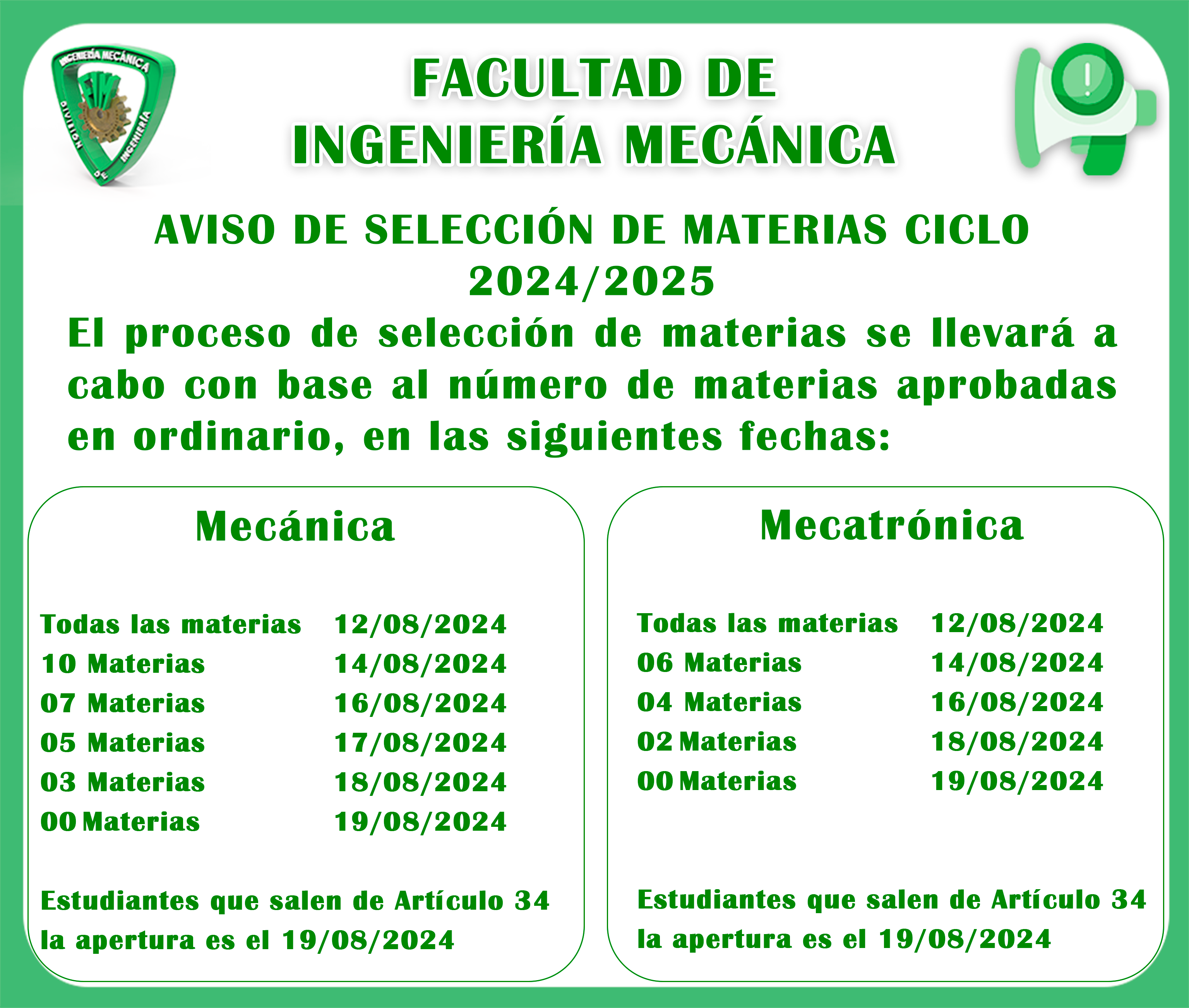 Reinscripciones Programa de Licenciatura en Ing. Mecatrónica